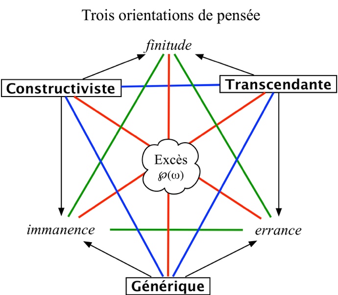 [9] Je réordonne ces cinq voies selon l’ordre ascendant des cardinaux mais le séminaire les ordonnait différemment, la voie hiérarchique (la deuxième) étant alors présentée en troisième position. Ce « trouble » dans l’ordre hiérarchique, focalisé sur la voie hiérarchique, s’éclaire rétroactivement par le fait que cette voie « hiérarchique » sera abandonnée en 2018 pour ne plus laisser place qu’à quatre types différents de grands infinis.