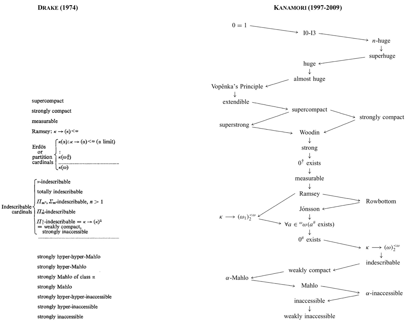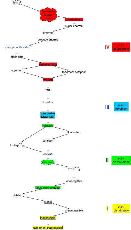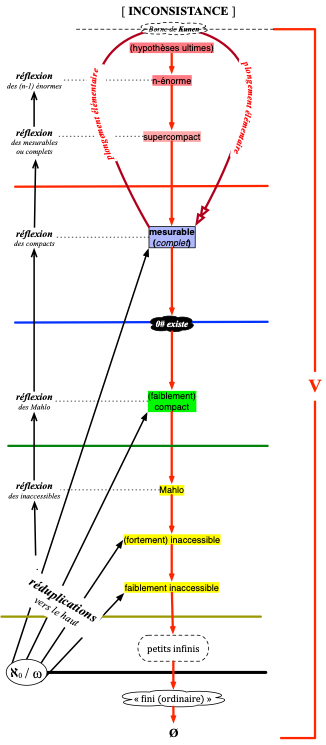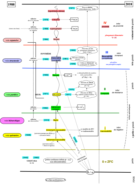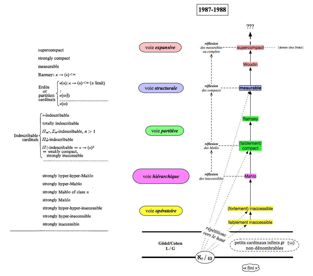 La réflexion s’arrêtait là en 1988 (les cardinaux supercompacts étaient les derniers dans l’ouvrage mathématique de référence, celui de Drake) mais, depuis, la réflexion s’est poursuivie vers le haut…
