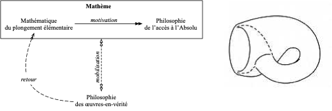 C’est très exactement en ce point où l’immanence d’une vérité particulière se trouve doublée d’une endogénéité philosophique générale (« en bouteille de Klein ») que s’engage le dialogue entre intellectualités spécifiques et philosophie.