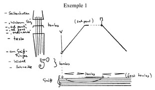 Le domaine du bruit rejoint de manière continue celui des hauteurs en variant la position de l'archet, qui va du chevalet jusqu'au doigt sur la touche (et, dans le même temps, avec le "glissando des sphères" conduit par la main gauche qui produit des hauteurs extrêmes lorsqu'elle arrive près du chevalet - "dans la neige" comme disent les musiciens).