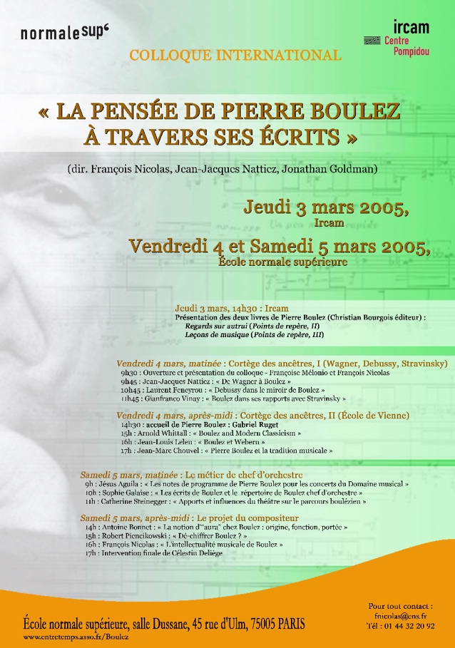 coorganisé avec l’Ircam par F. Nicolas (Ens), J.-J.