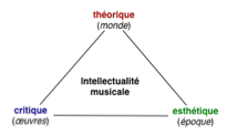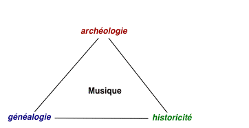 car les dimensions critique, théorique et esthétique de l’intellectualité musicale consonnent aux dimensions réciproquement généalogique (des œuvres), archéologique (du monde de la musique) et d’historicité (de l’époque de pensée).