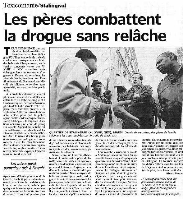 Le collectif anti-crack tient une permanence chaque mardi, de 19 heures à 20 h 30 au café le Rallye, place de Stalingrad (X e ). Renseignements : www.entre-temps.asso.fr/stalingrad.